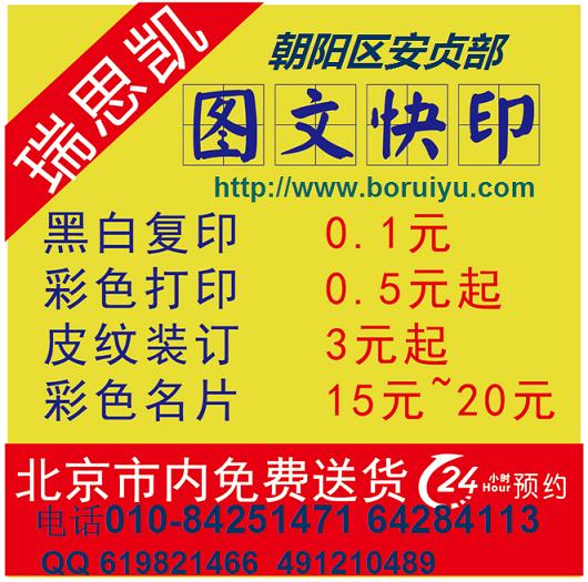 【安華橋圖文快印|安貞橋圖文店|北三環(huán)數(shù)碼圖文快印|24小時(shí)圖文打印標(biāo)書裝訂店|